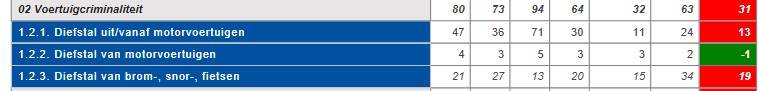Hier staan we er een stuk ongunstiger voor met een ruime verdubbeling van het aantal diefstallen uit/vanaf motorvoertuigen.